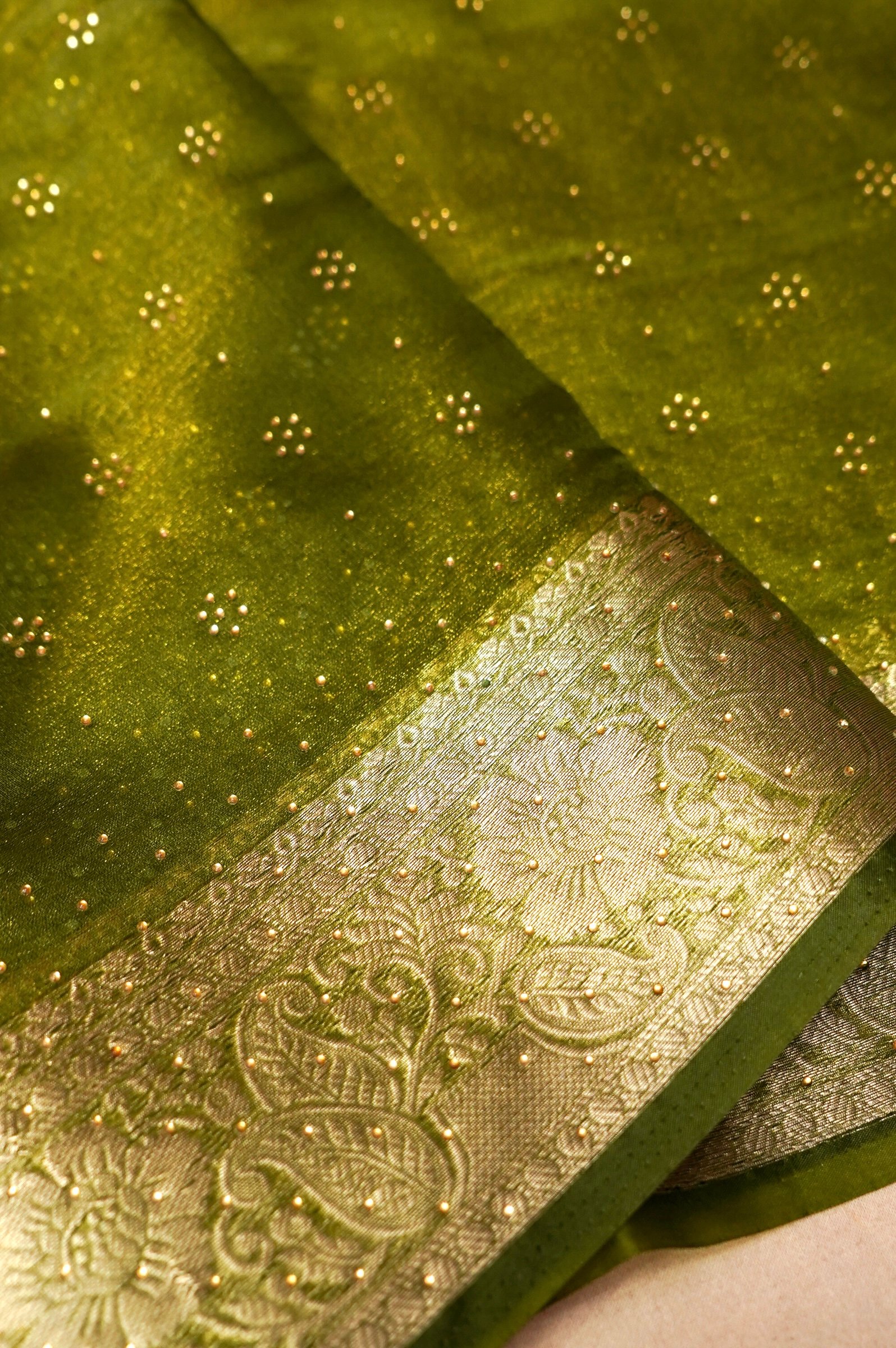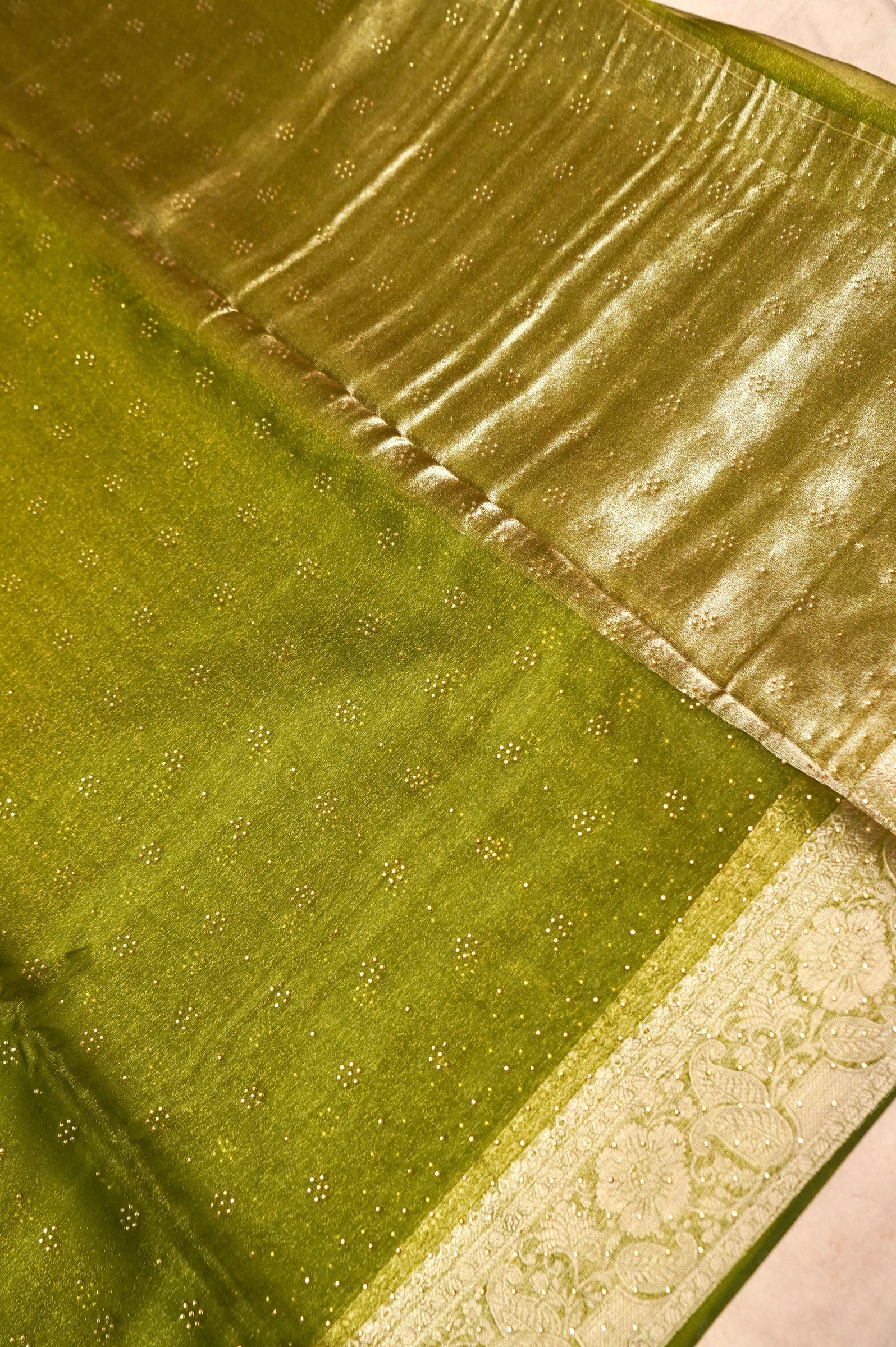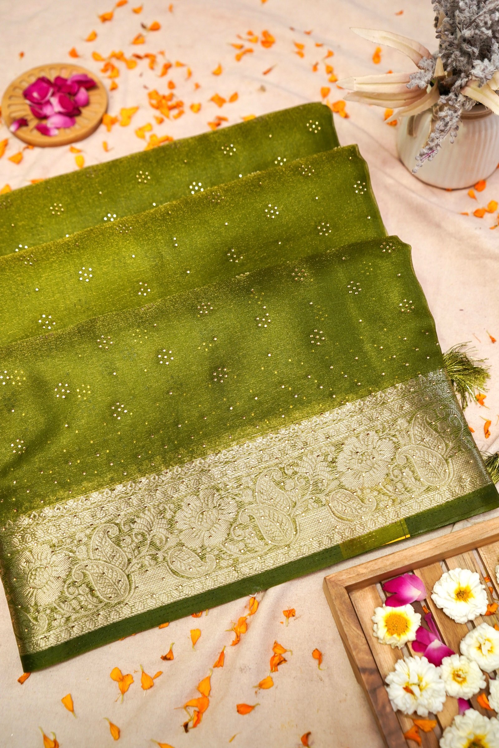Green Organza Zari Stone Work Designer Saree