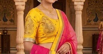 Collection Note: Inspired by joyful haldi rituals, this lehenga set reflects bright colors and traditional craftsmanship, making it an ideal pick for pre-wedding functions and festive gatherings.