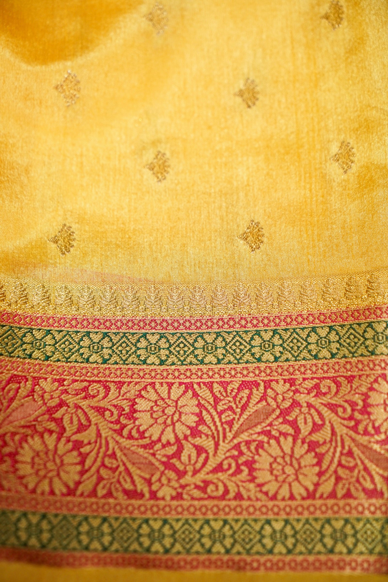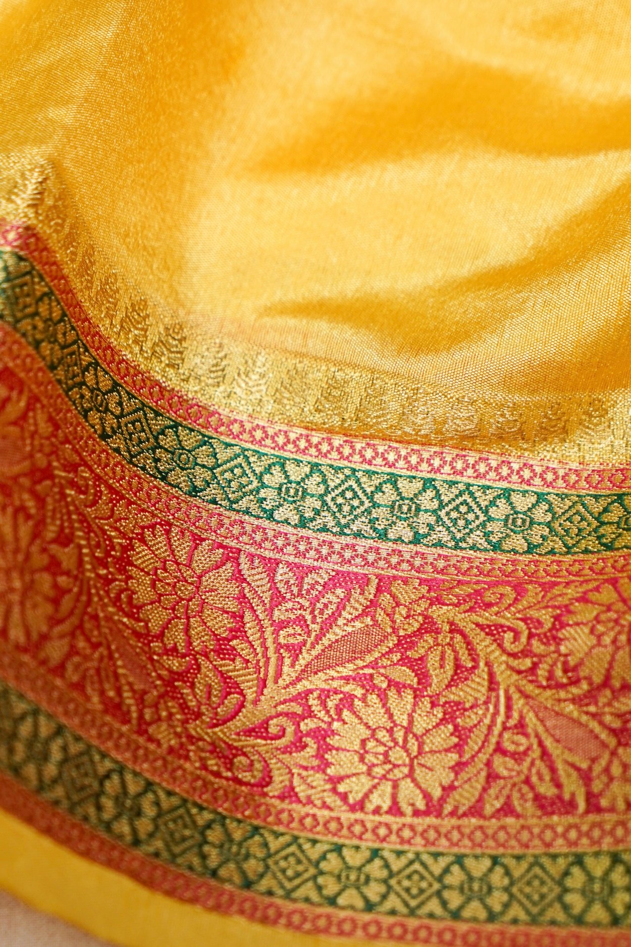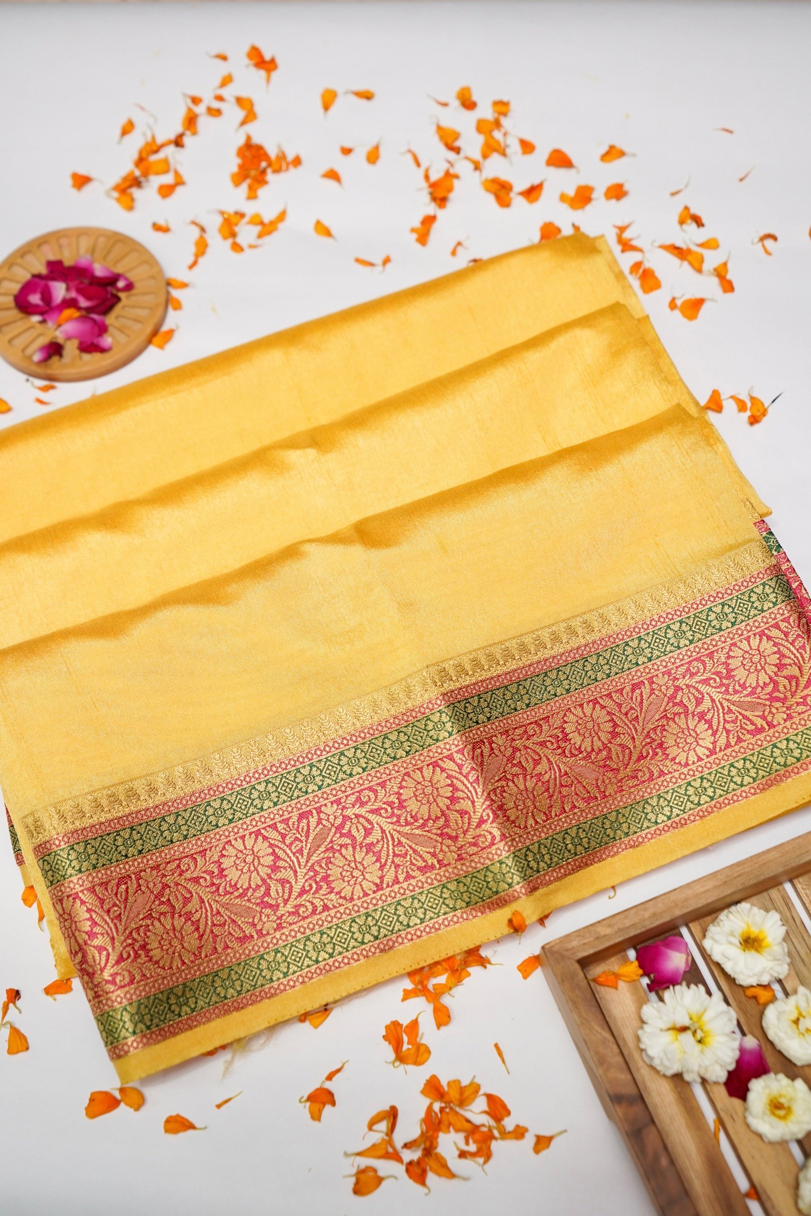 Yellow Paper Silk Zari Border Banarasi Designer Saree