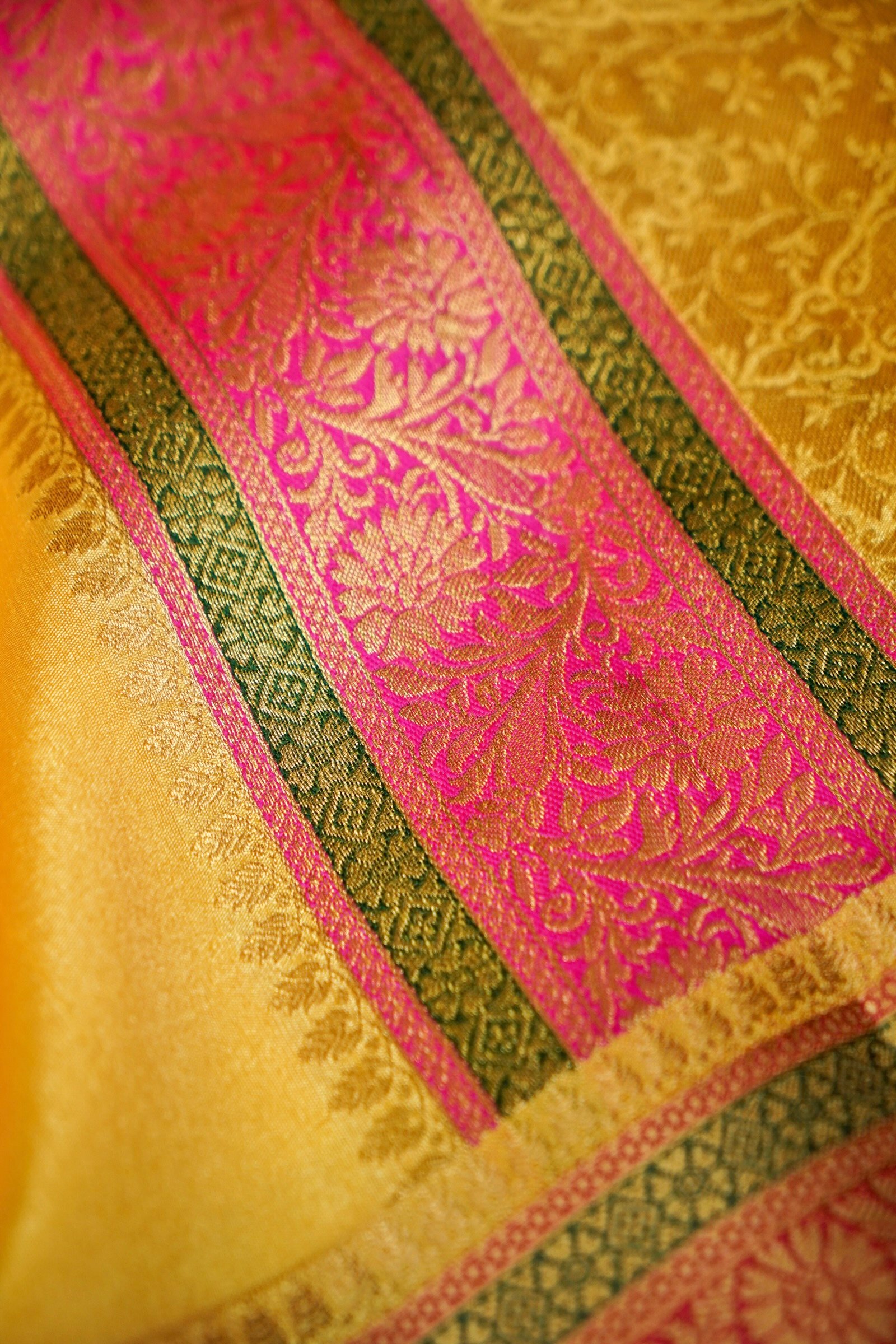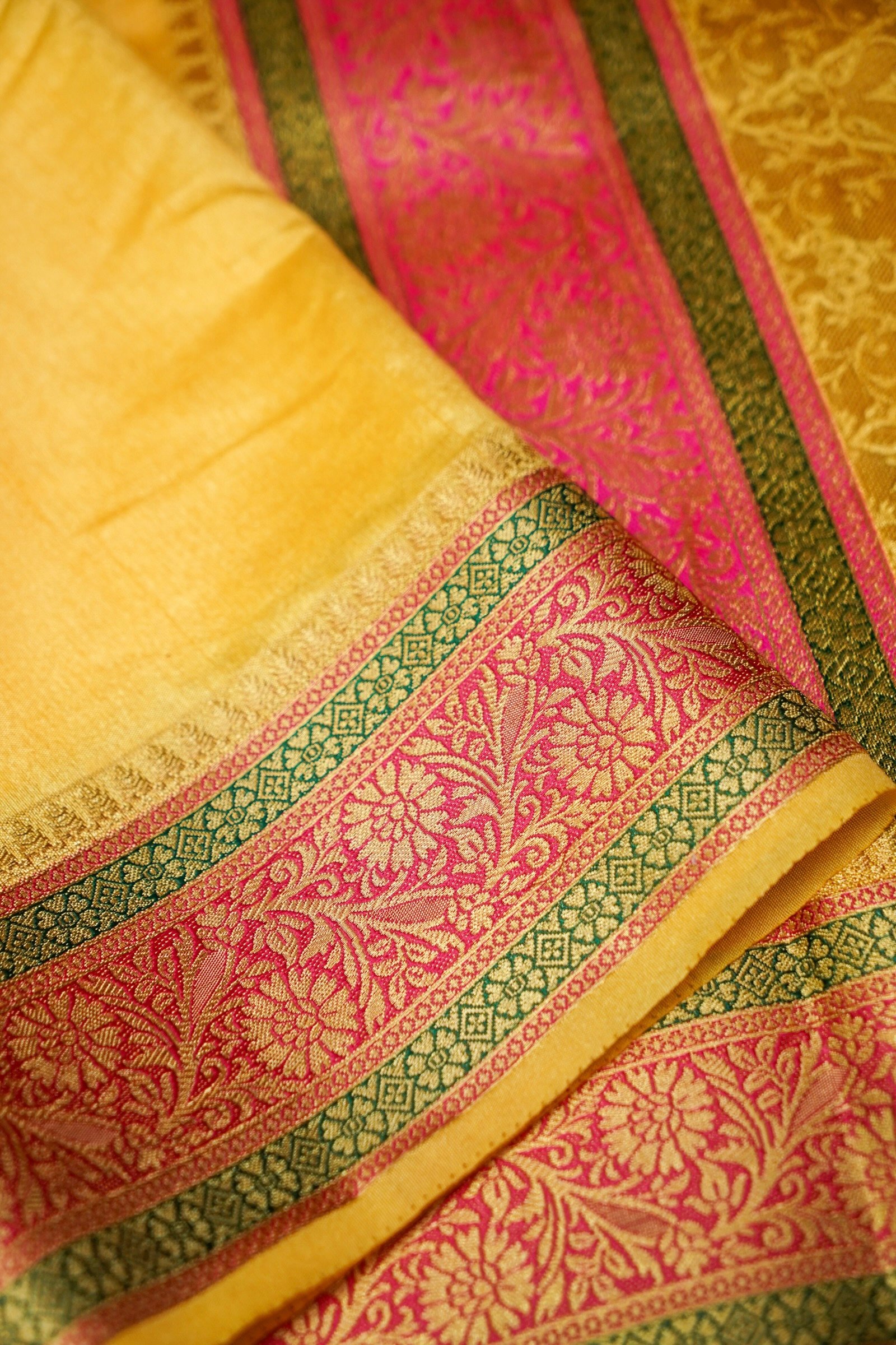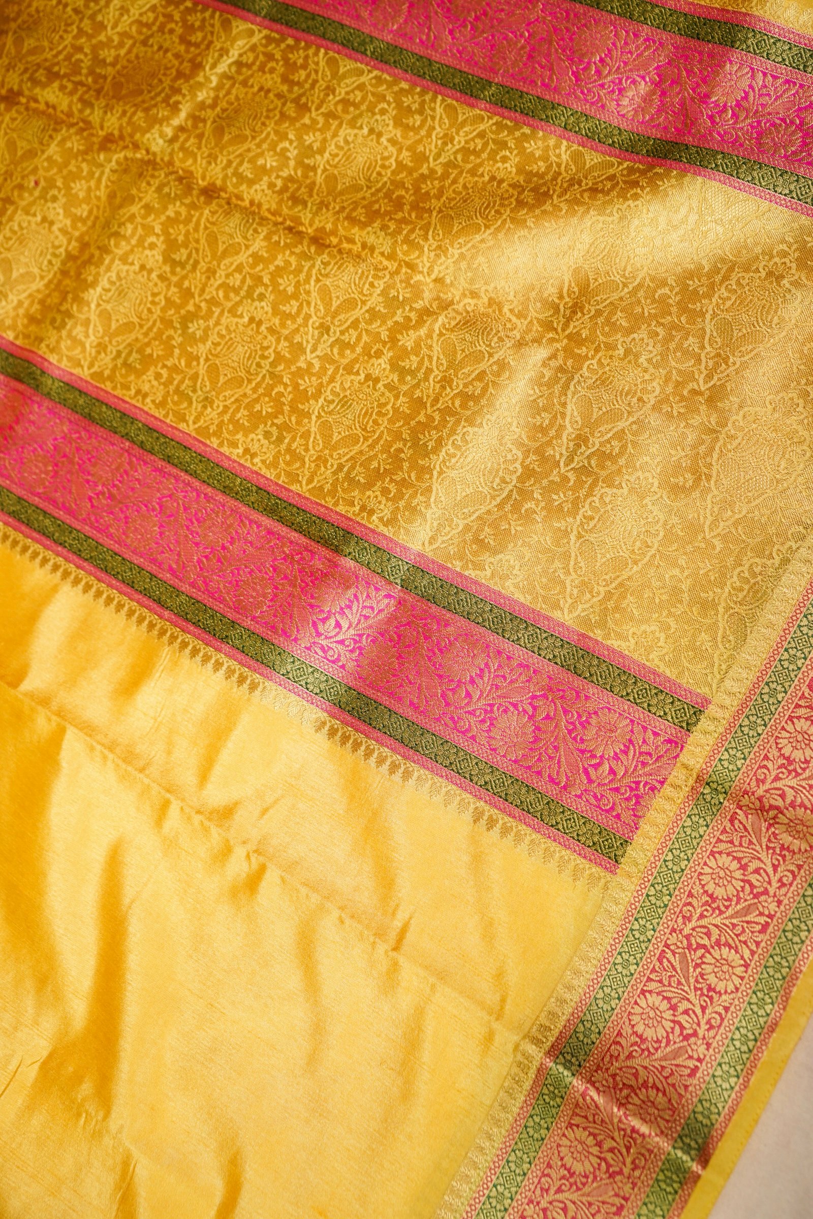 Yellow Paper Silk Zari Border Banarasi Designer Saree